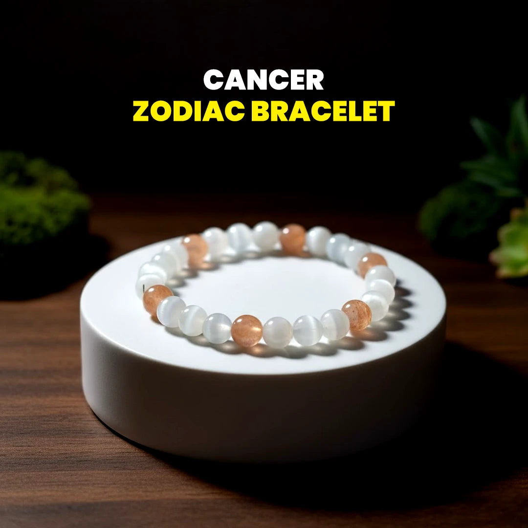 Nurture your emotions and strengthen your intuition with this Cancer Zodiac Bracelet, beautifully crafted with Moonstone, and Selenite. Designed especially for Cancerians, this bracelet harmonizes emotional depth with inner peace, bringing protection, love, and spiritual clarity to your aura.
