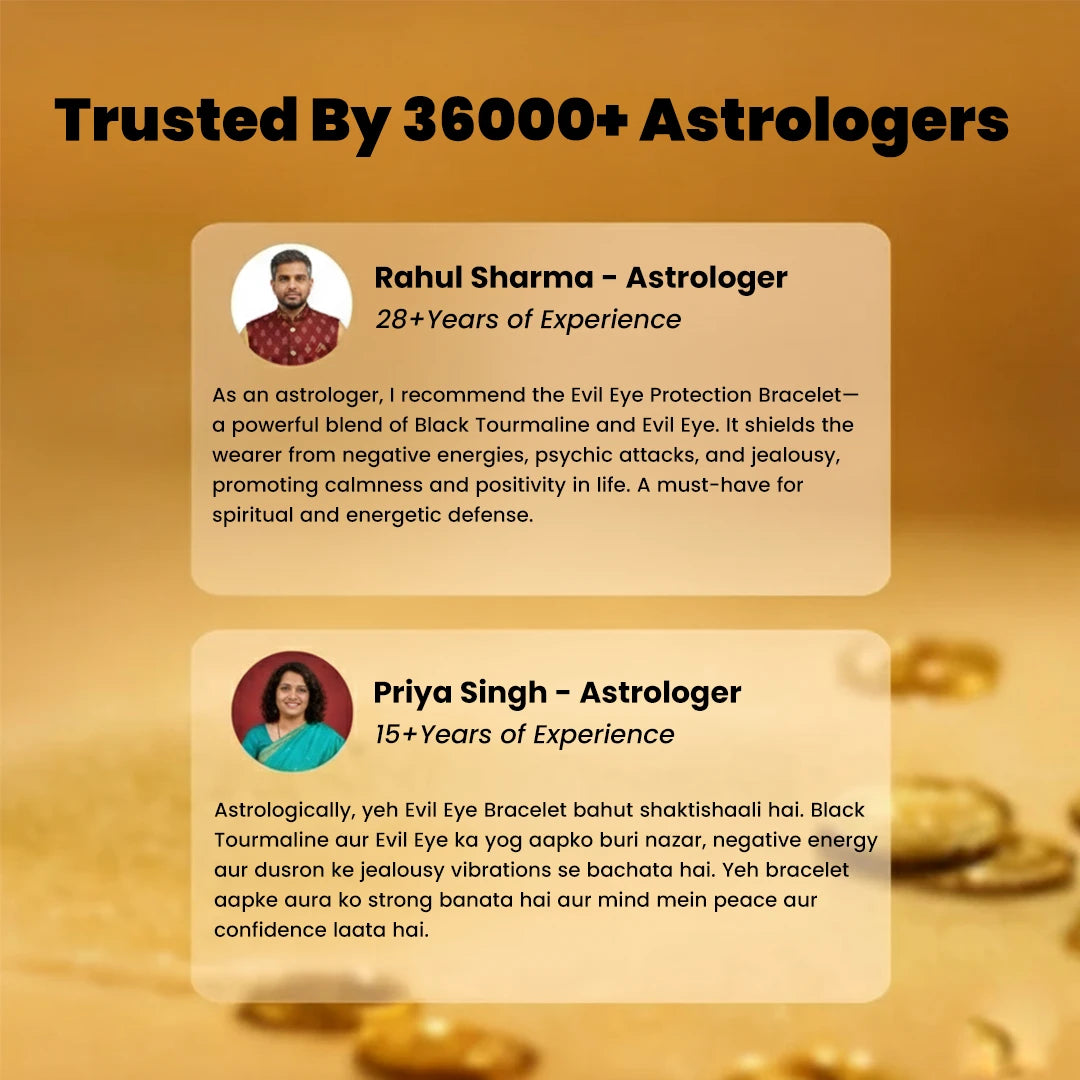 Wear the Evil Eye Protection Bracelet on your left wrist, which is considered the receiving hand for protective energy. It allows positive vibrations to enter your aura while safeguarding you from negativity.
