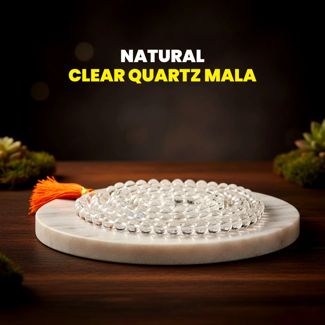 Experience the transformative power of the Natural Clear Quartz Mala, handcrafted from authentic, natural clear quartz beads. Known as the "Master Healer," this mala is a powerful spiritual tool that enhances mental clarity, emotional balance, and spiritual growth. Whether used in meditation, mantra chanting, or daily wear, it amplifies your intentions and promotes holistic well-being.